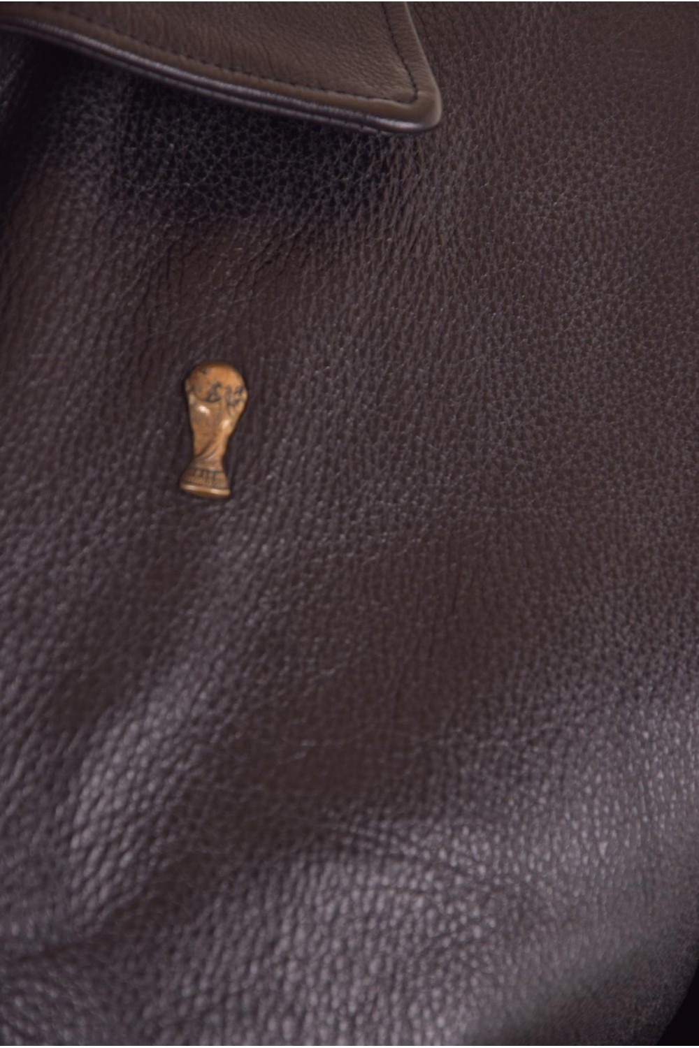 Гръдна обиколка 120см. Дължина 85см. Марково кожено яке с цип и копчета. Кожата е дебела и плътна. Без следи от употреба. Моделът е висок 186 см.