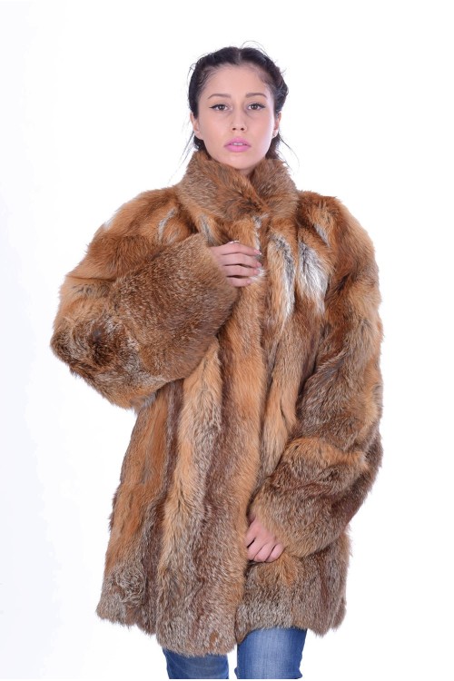 Дамско палто от лисица . Гръдна обиколка: 128 см. Дължина: 90 см. Талия: 134 см. Ханш: 140 см. Рамене: 54 см. Разстоянието на раменете е измерено от шев до шев на ръкавите. Дължина на ръкав: 58 см. Mоделът е висок: 170 см.