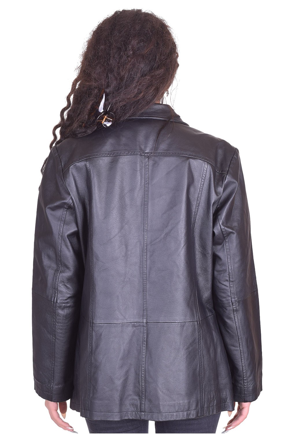 Черно яке от мека и плътна кожа с два предни джоба, метален цип и подплата от полиестер. Гръдна обиколка: 106 см. Дължина: 74 см. Талия: 100 см. Ханш: 106 см. Рамене: 45 см. Разстоянието на раменете е измерено от шев до шев на ръкавите. Дължина на ръкав: 62 см. Mоделът е висок: 170 см.| За продукта | |