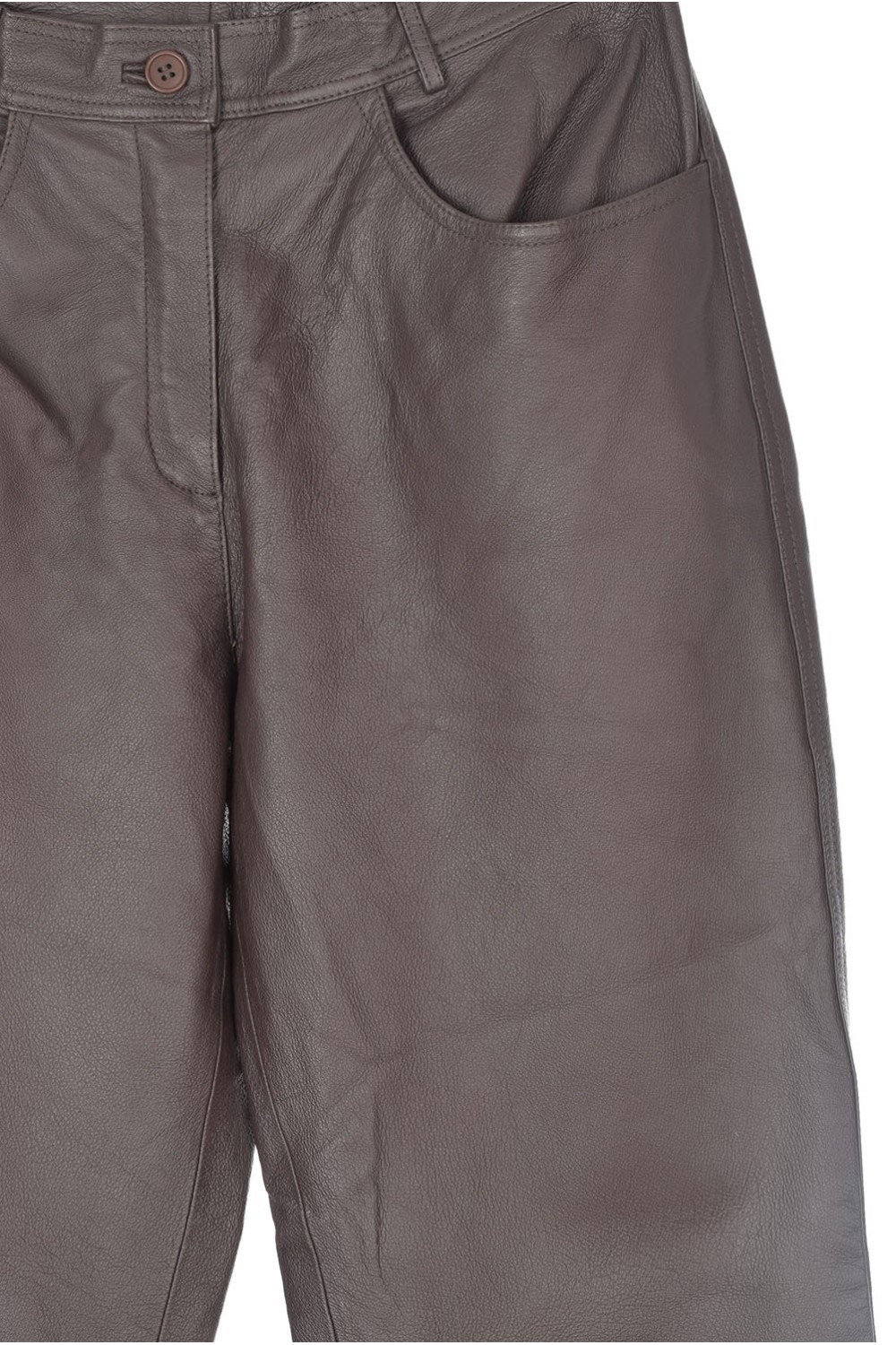 Тъмно кафяв дамски панталон от естествена кожа