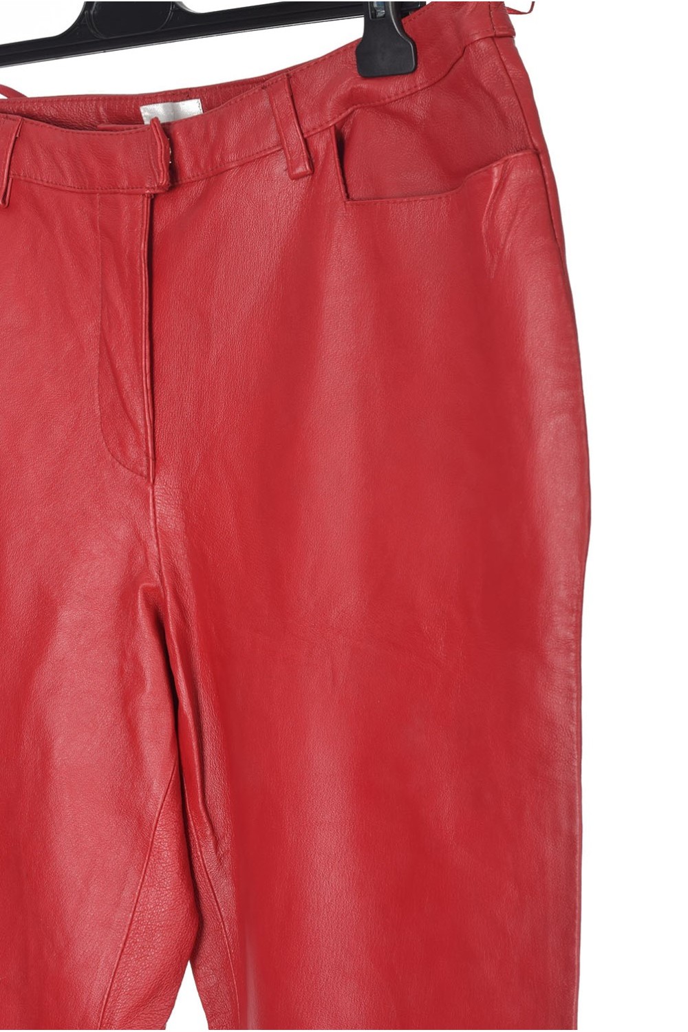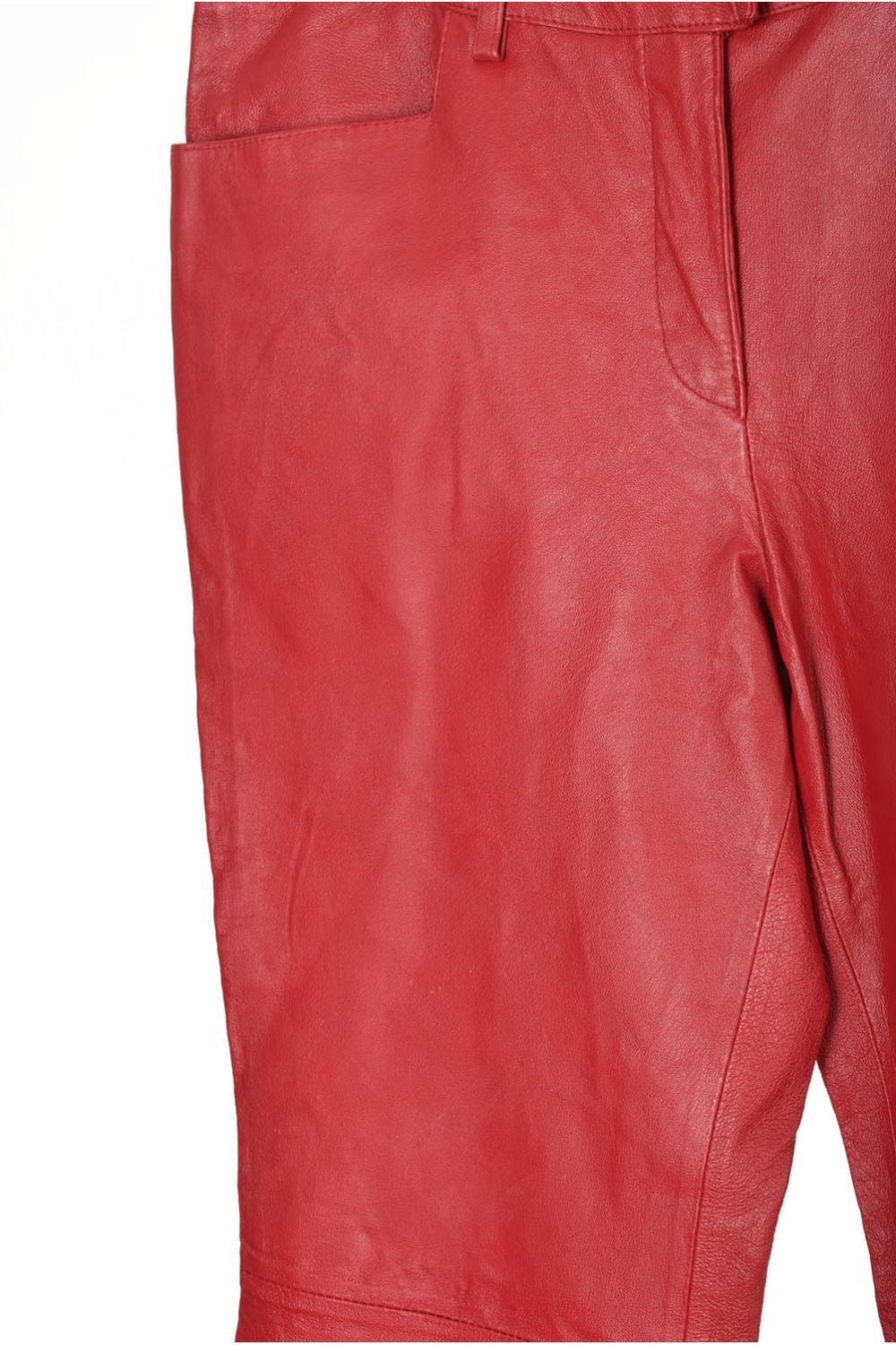 Червен дамски панталон от естествена кожа