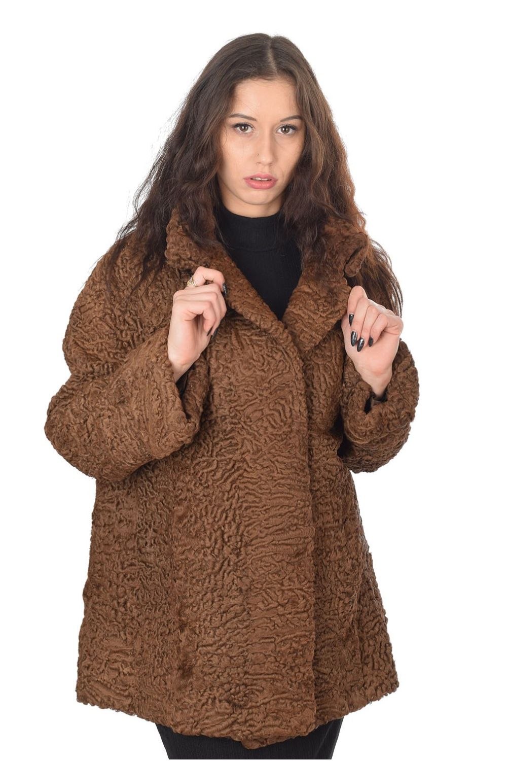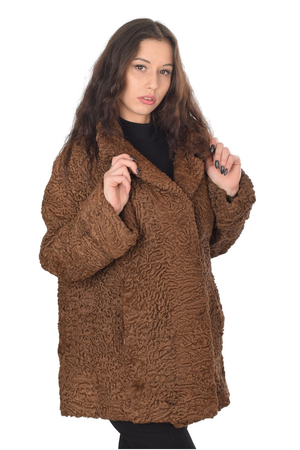 Кафяво палто от астраган