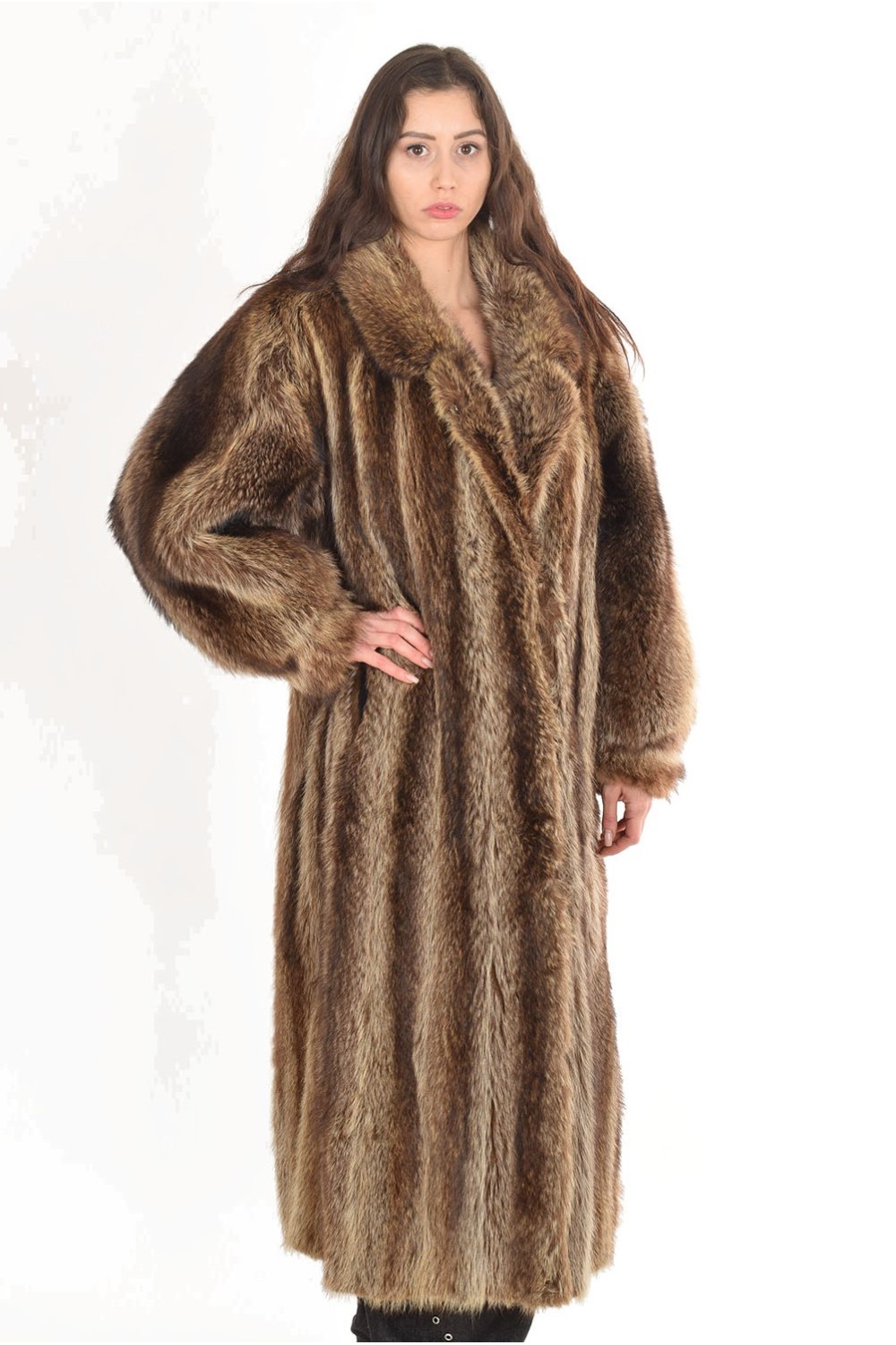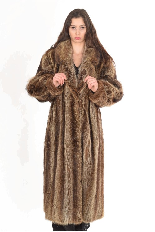 Палто . От енот.Гръдна обиколка: 120 см. Дължина: 130 см. Талия: 120 см. Ханш: 130 см. Рамене: 46 см. Разстоянието на раменете е измерено от шев до шев на ръкавите. Дължина на ръкав: 62 см.