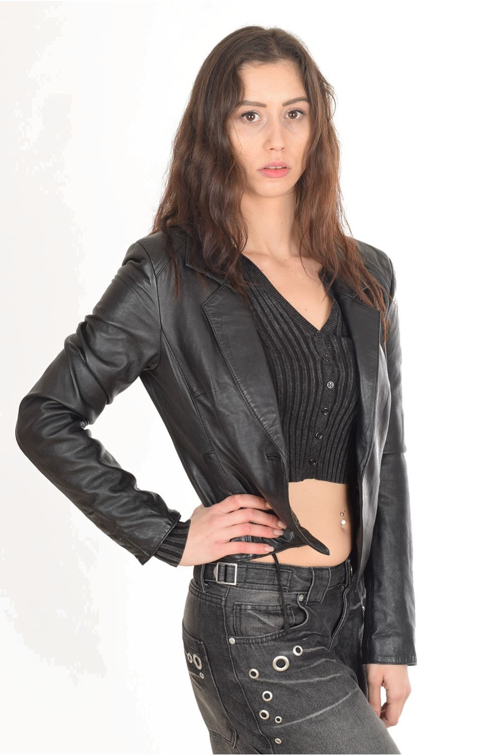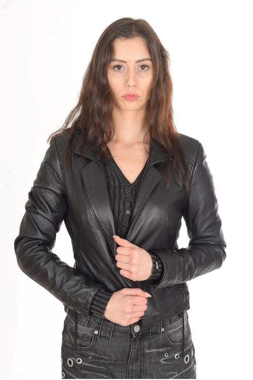 Елегантно черно яке от естествена кожа