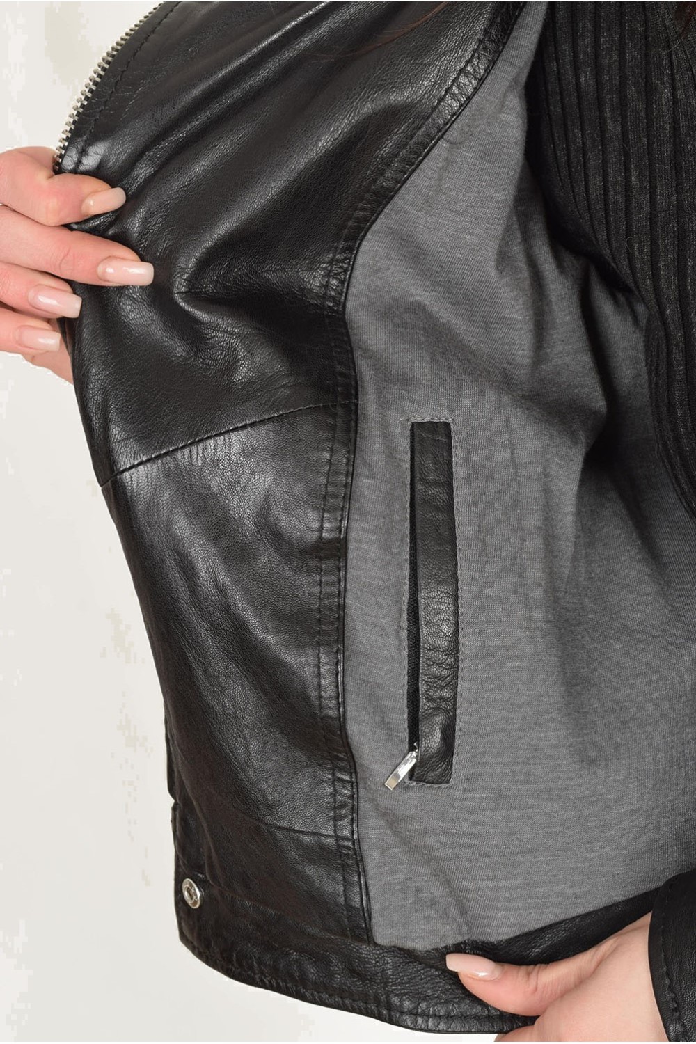 Модно черно яке от естествена кожа