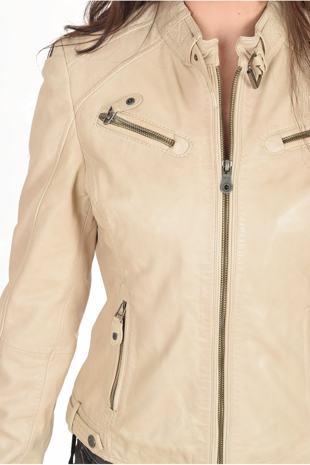 Стилно бежово яке от естествена кожа
