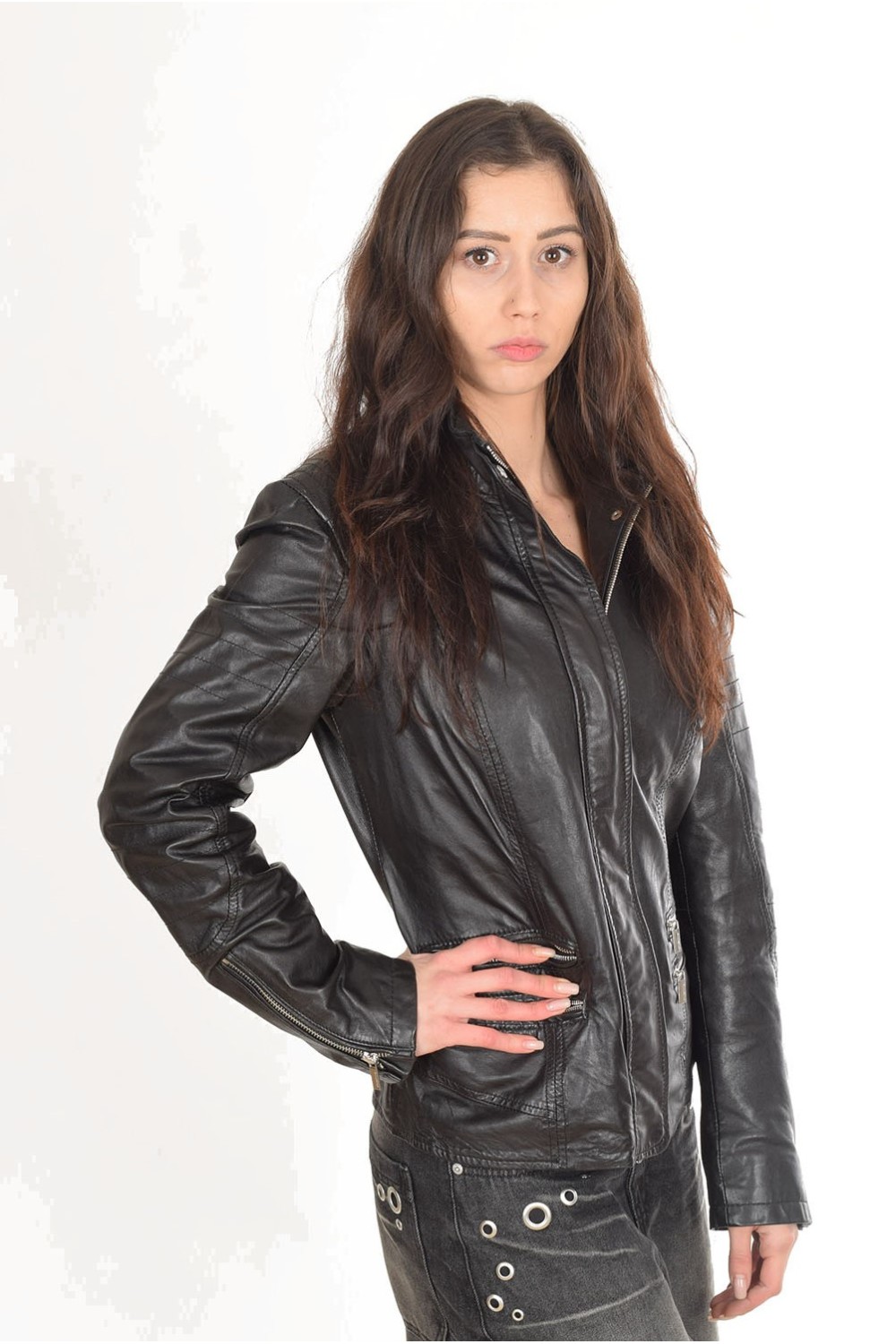 Актуално черно яке от естествена кожа