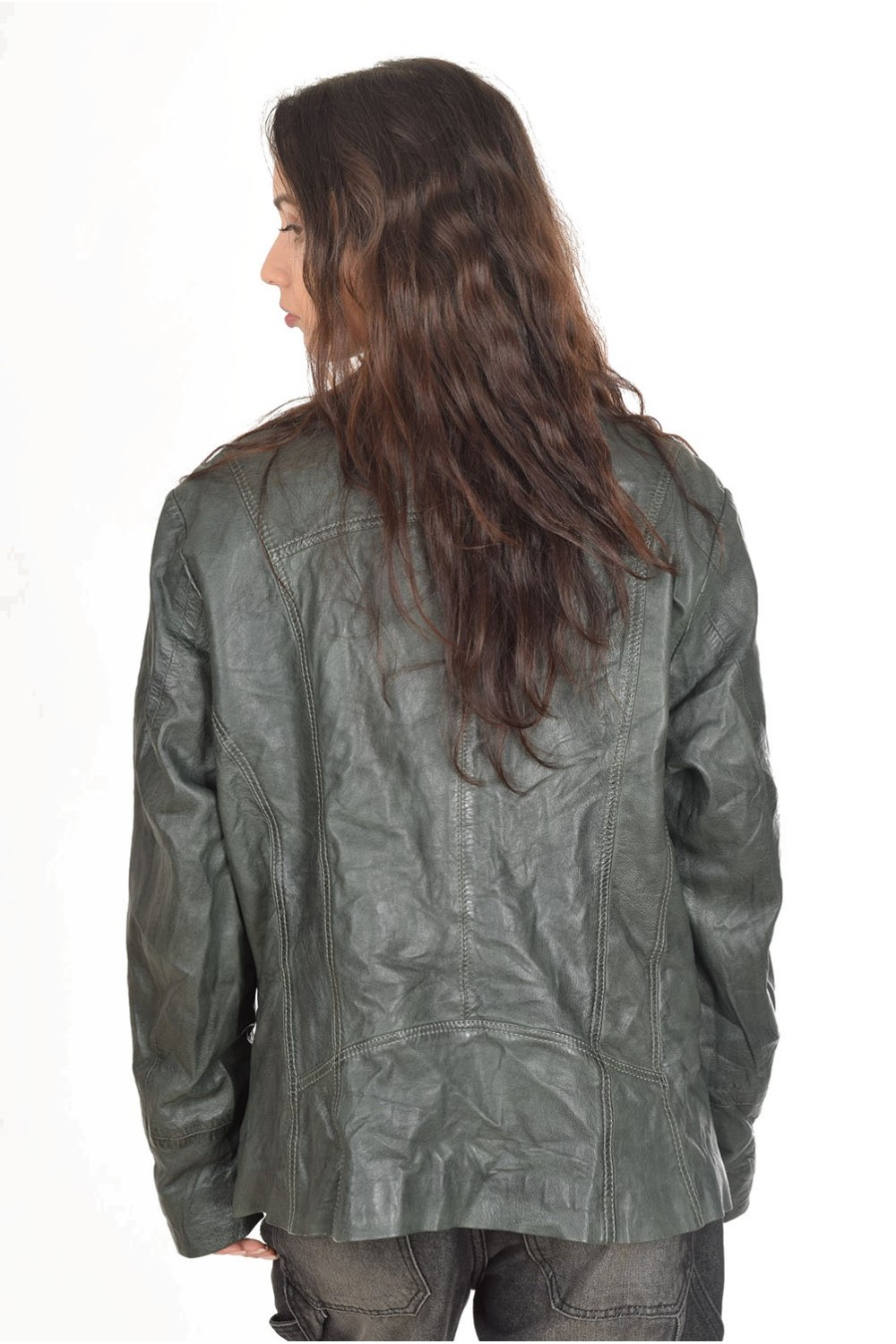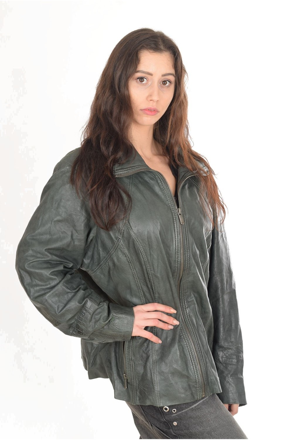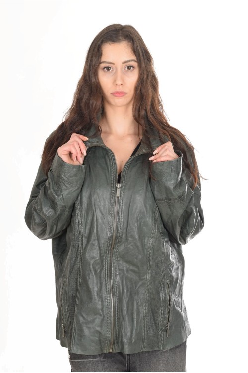Тъмно зелено дамско яке от естествена кожа