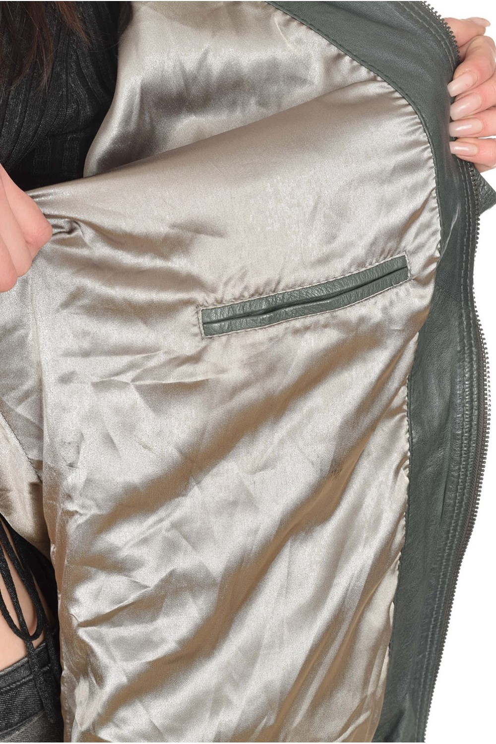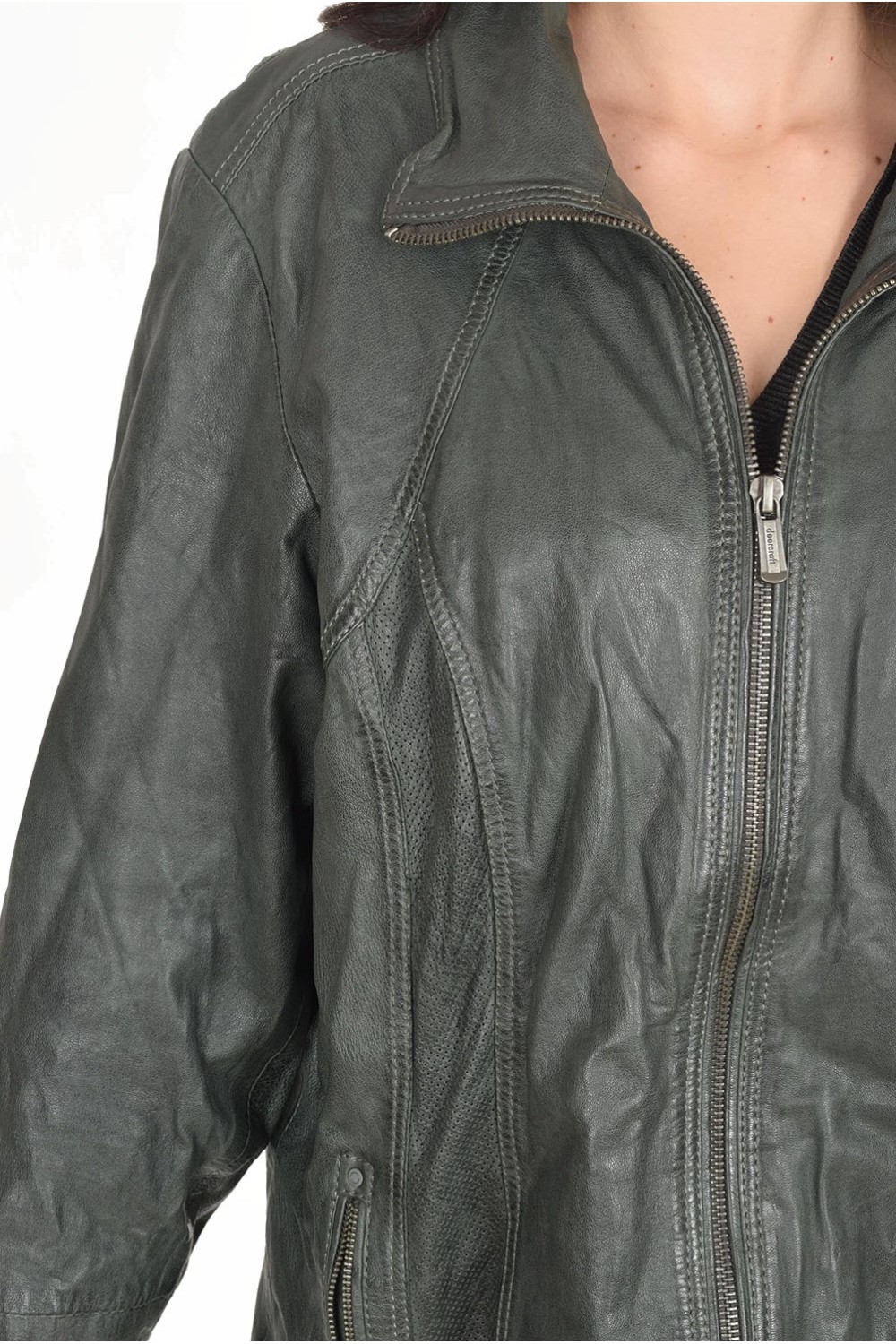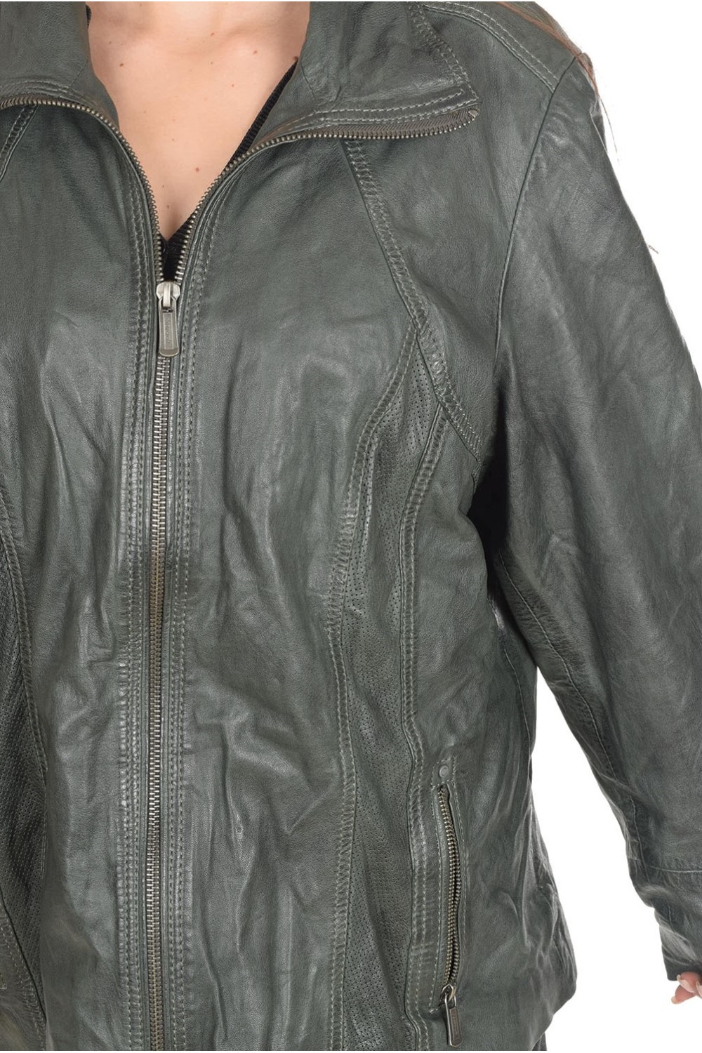 Тъмно зелено дамско яке от естествена кожа