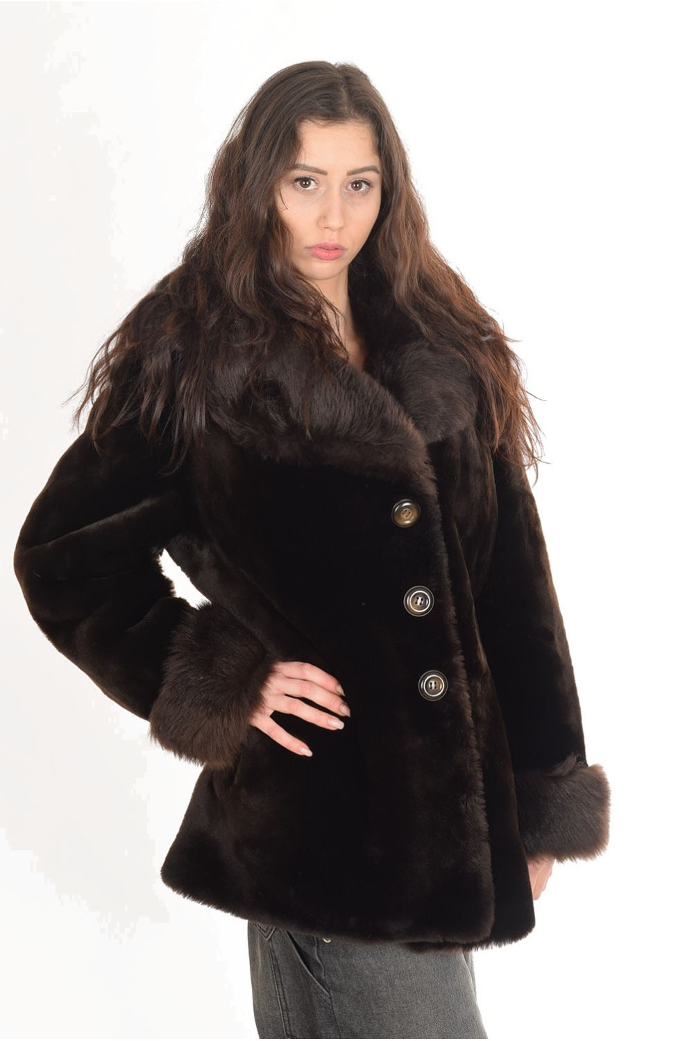 Модерно дамско палто от естествен косъм