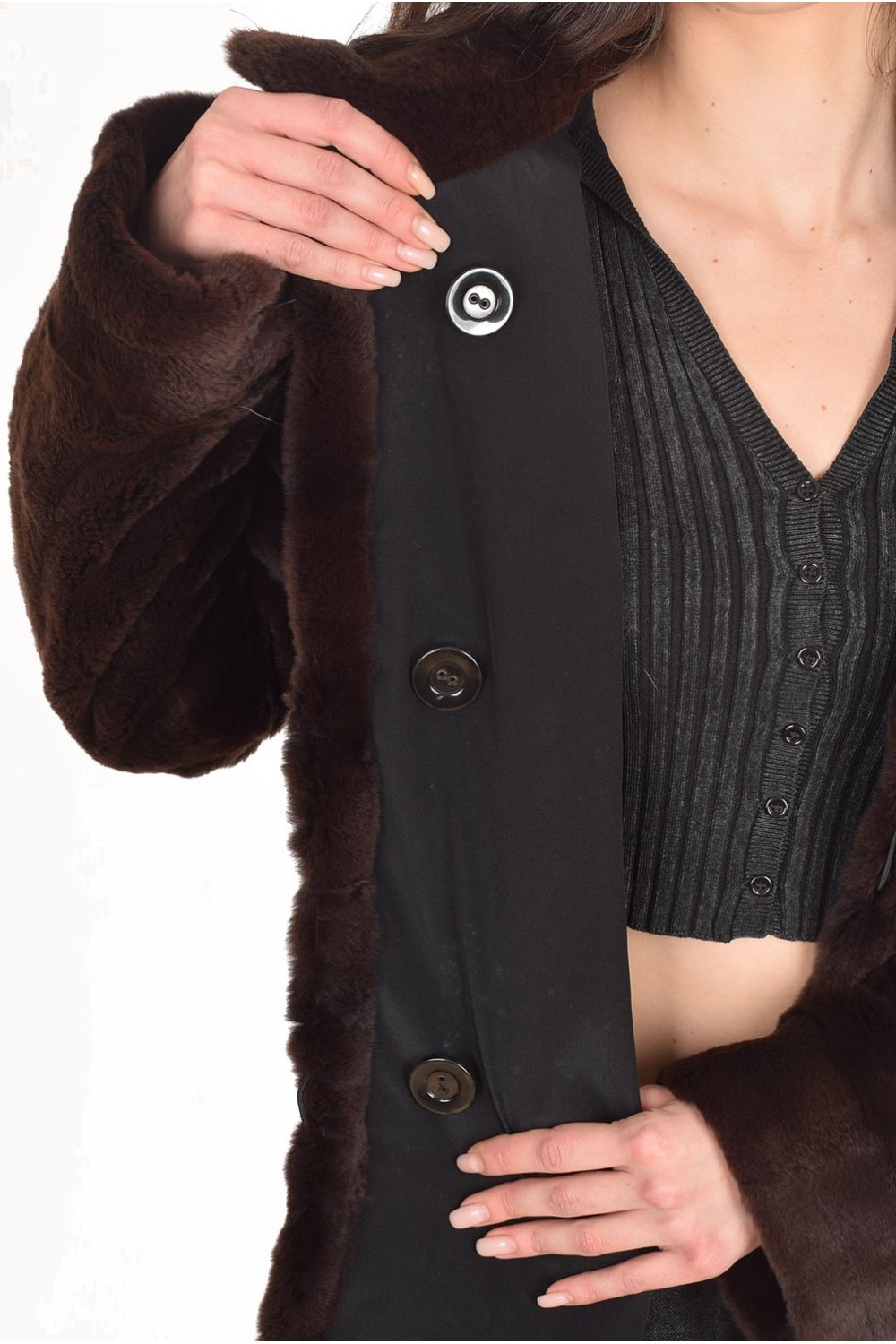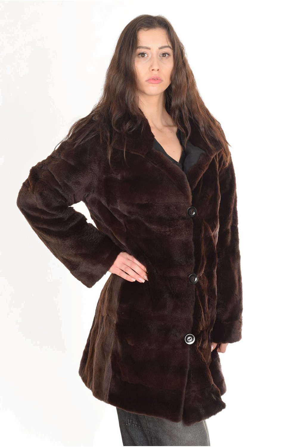 Кокетно кафяво палто от заек