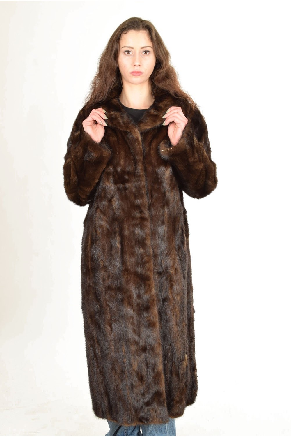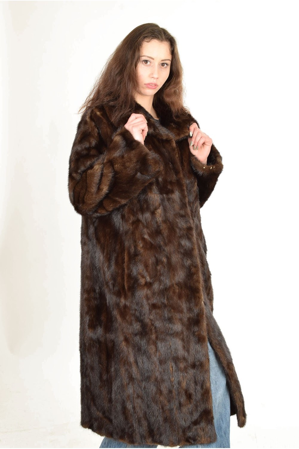 Палто . Гръдна обиколка: 110 см. Дължина: 120 см. Талия: 110 см. Ханш: 114 см. Рамене: 45 см. Разстоянието на раменете е измерено от шев до шев на ръкавите. Дължина на ръкав: 62 см.