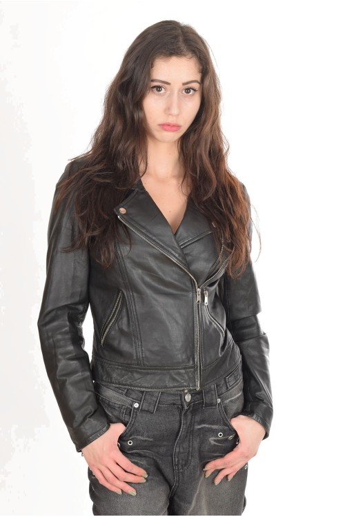 Спортно черно яке от естествена кожа