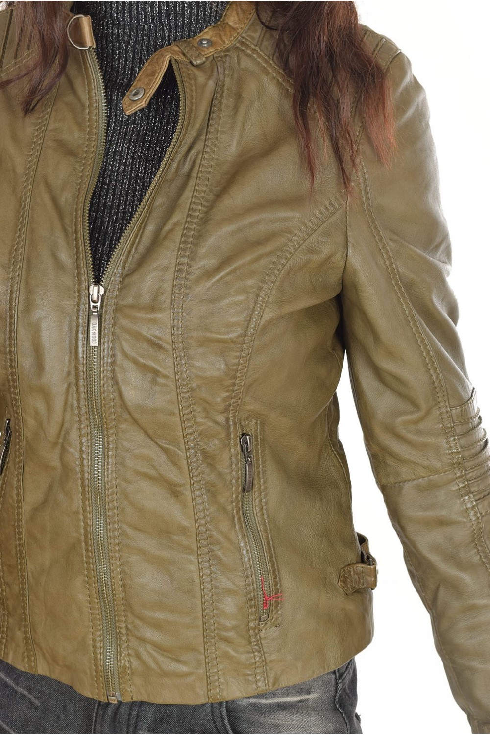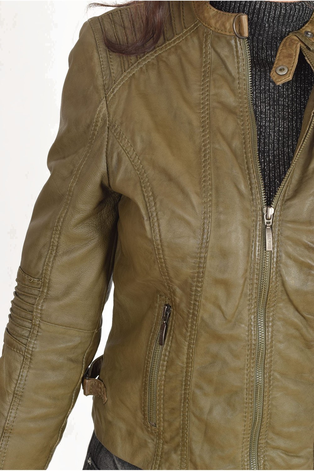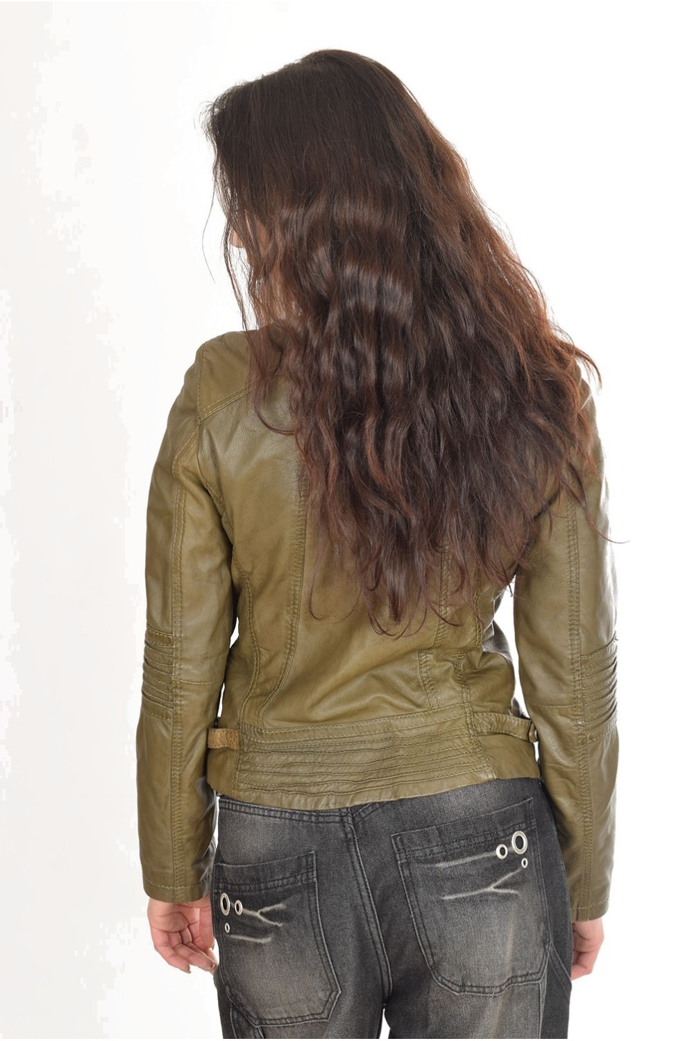 Модно тъмно зелено яке от естествена кожа