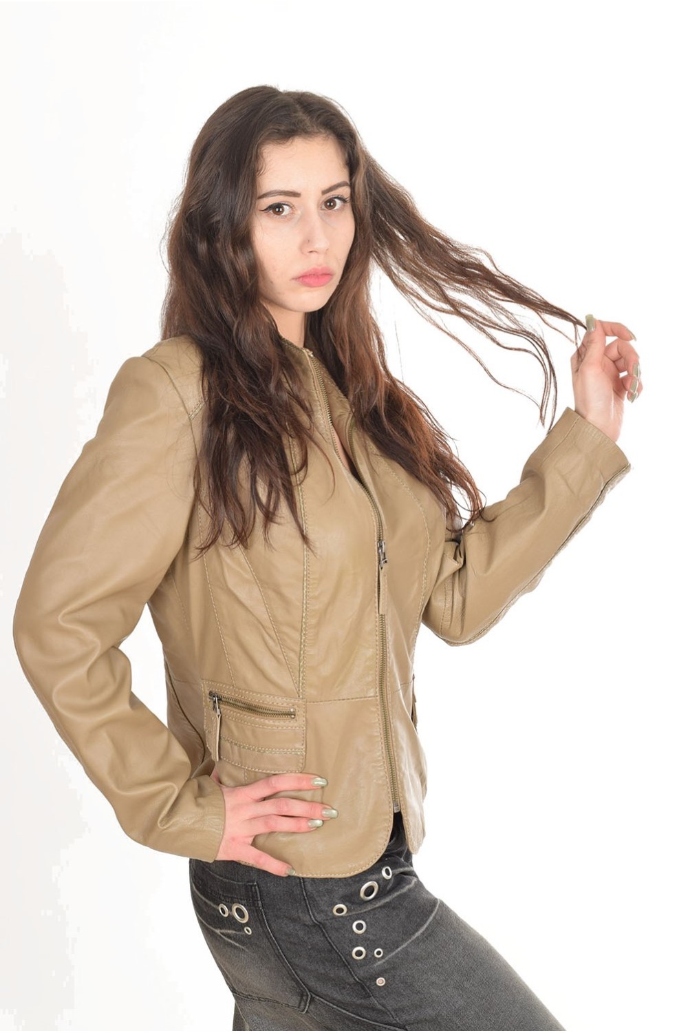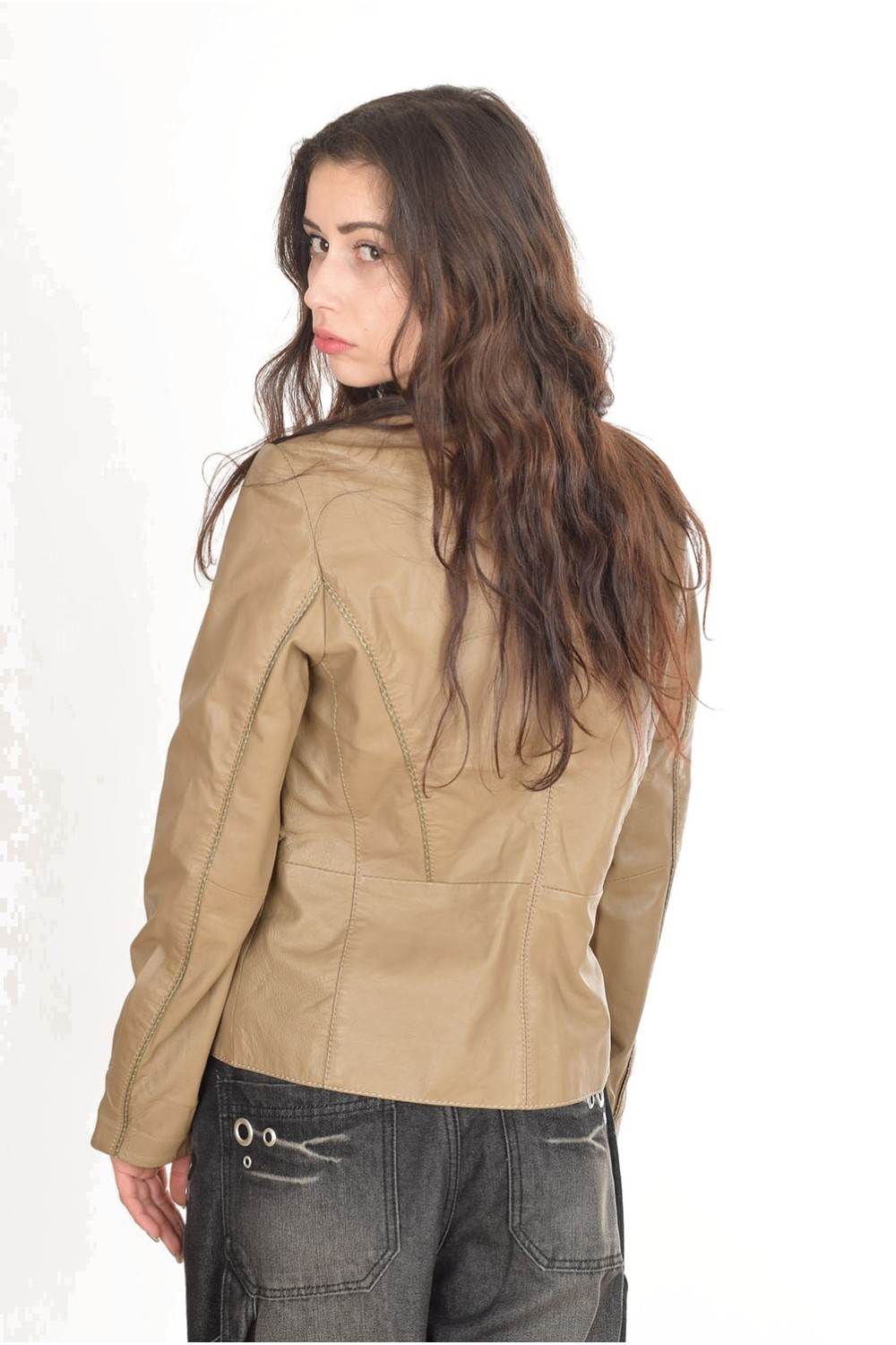 Елегантно бежово яке от естествена кожа