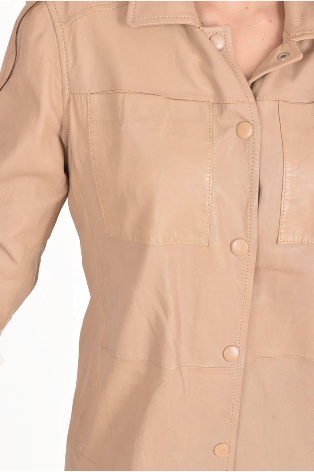 Елегантно бежово дамско яке от естествена кожа