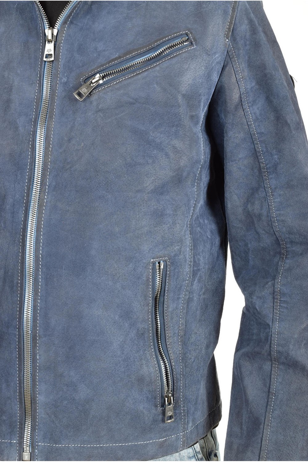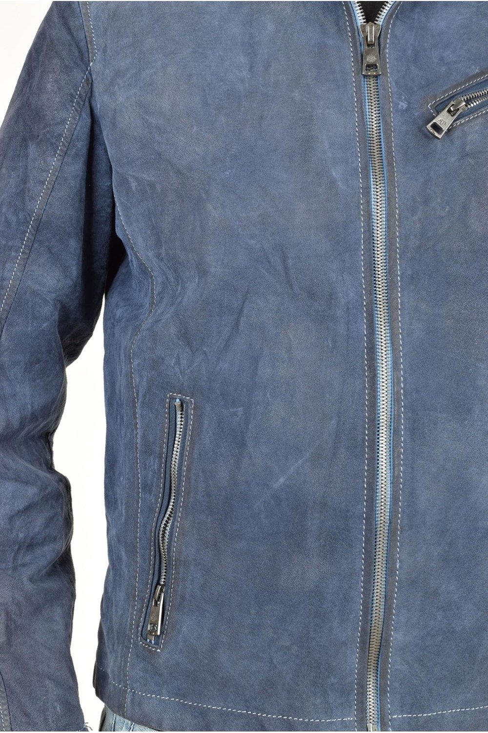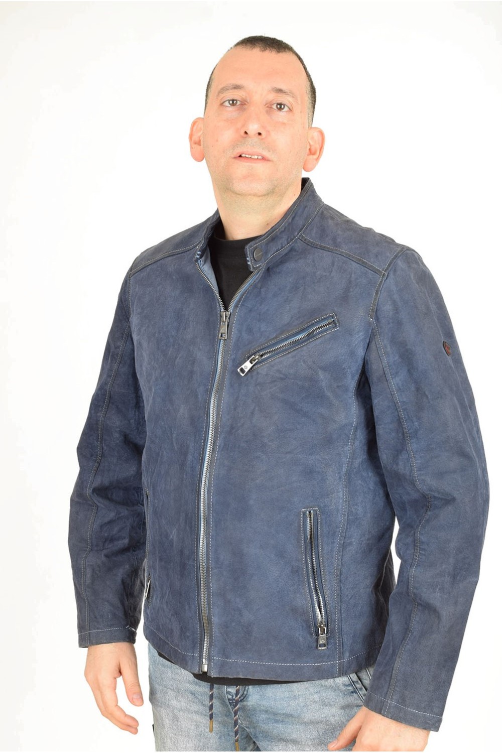 Тъмно синьо велурено яке от естествена кожа
