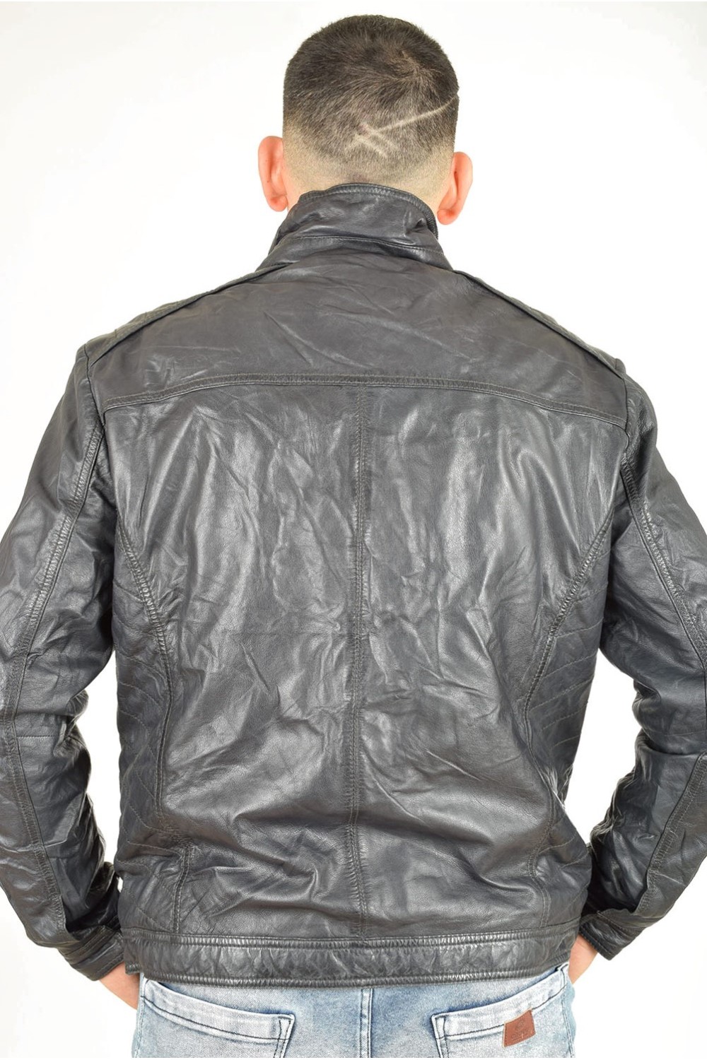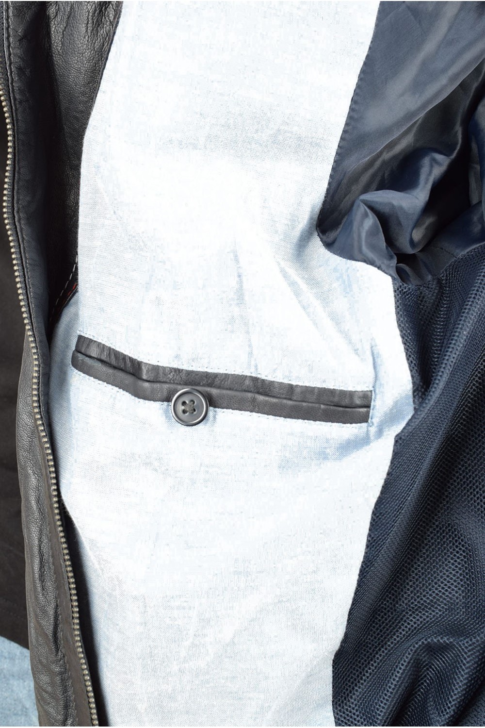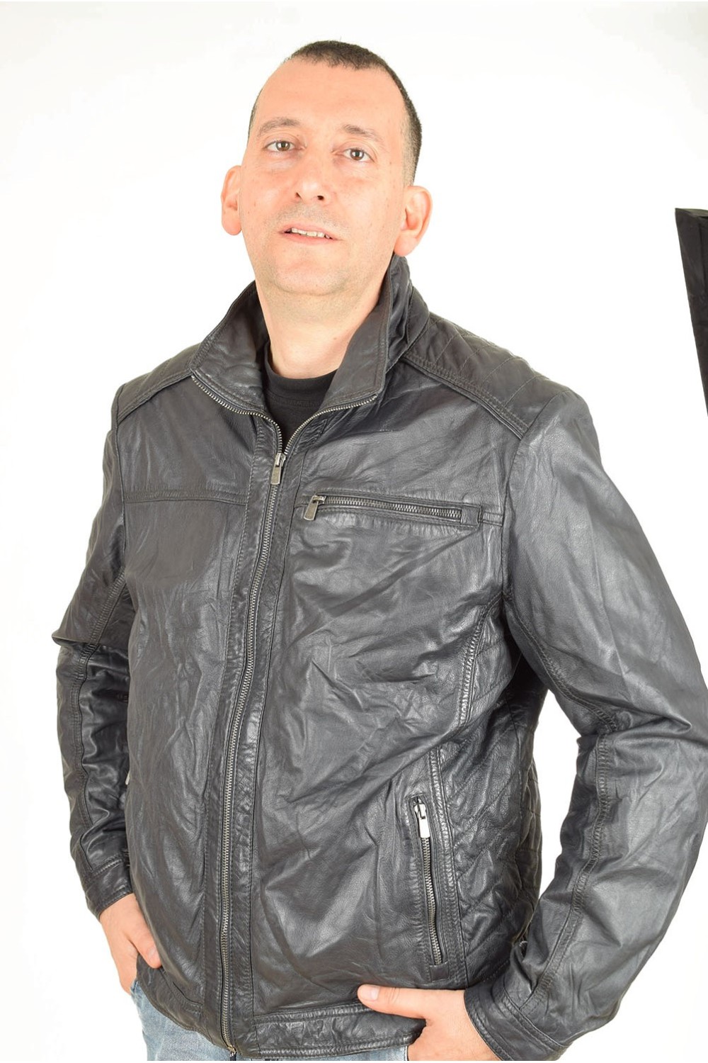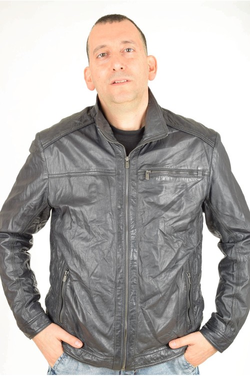Тъмно синьо дамско яке от естествена кожа