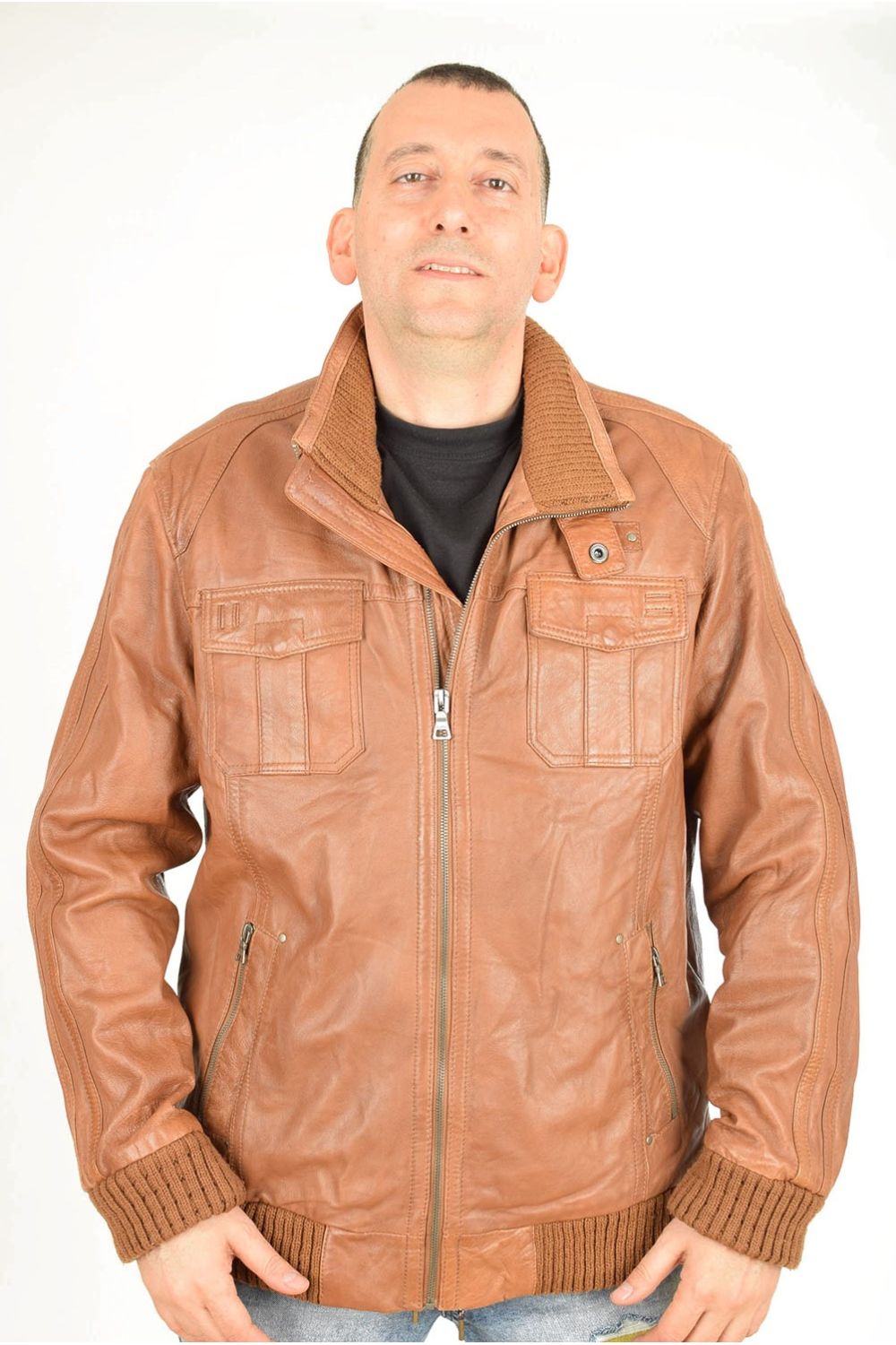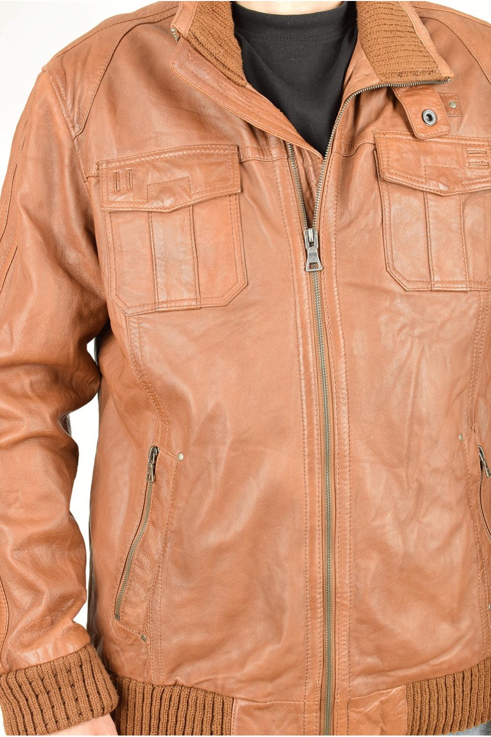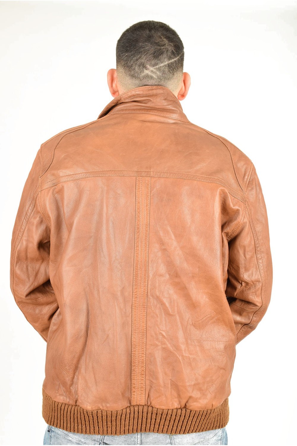 Брандово кафяво яке от естествена кожа