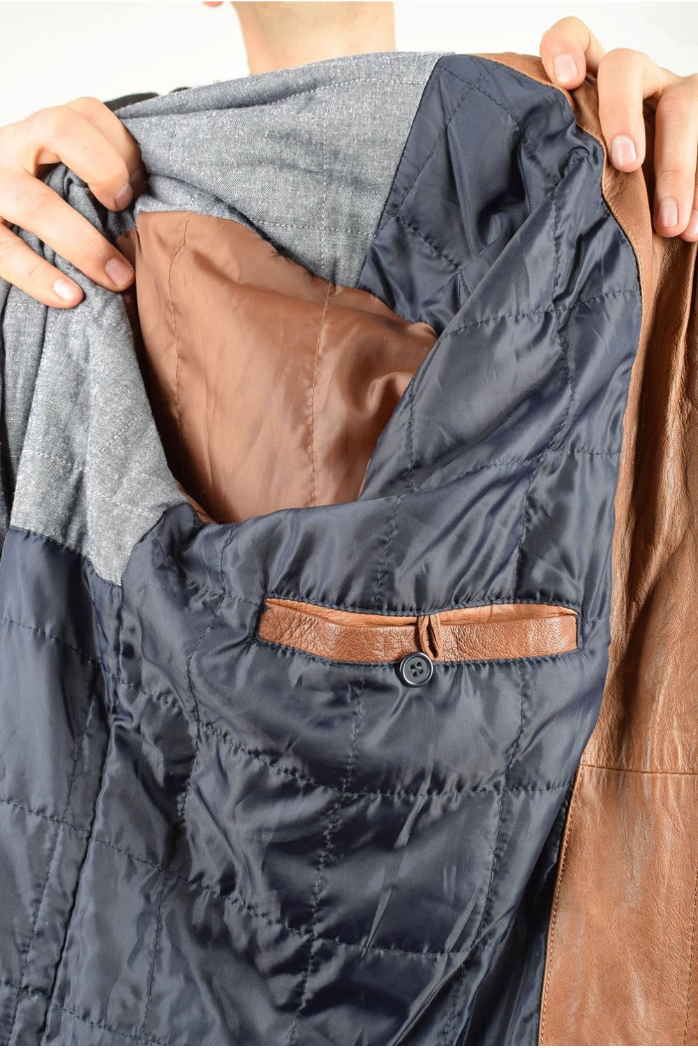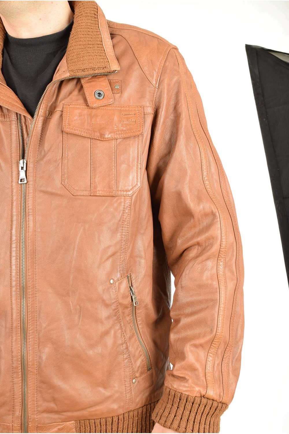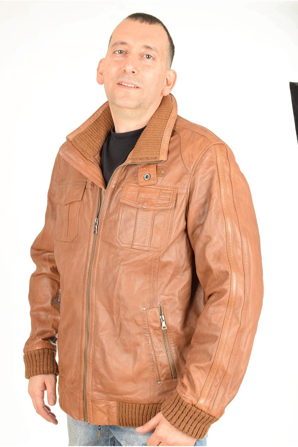 Брандово кафяво яке от естествена кожа